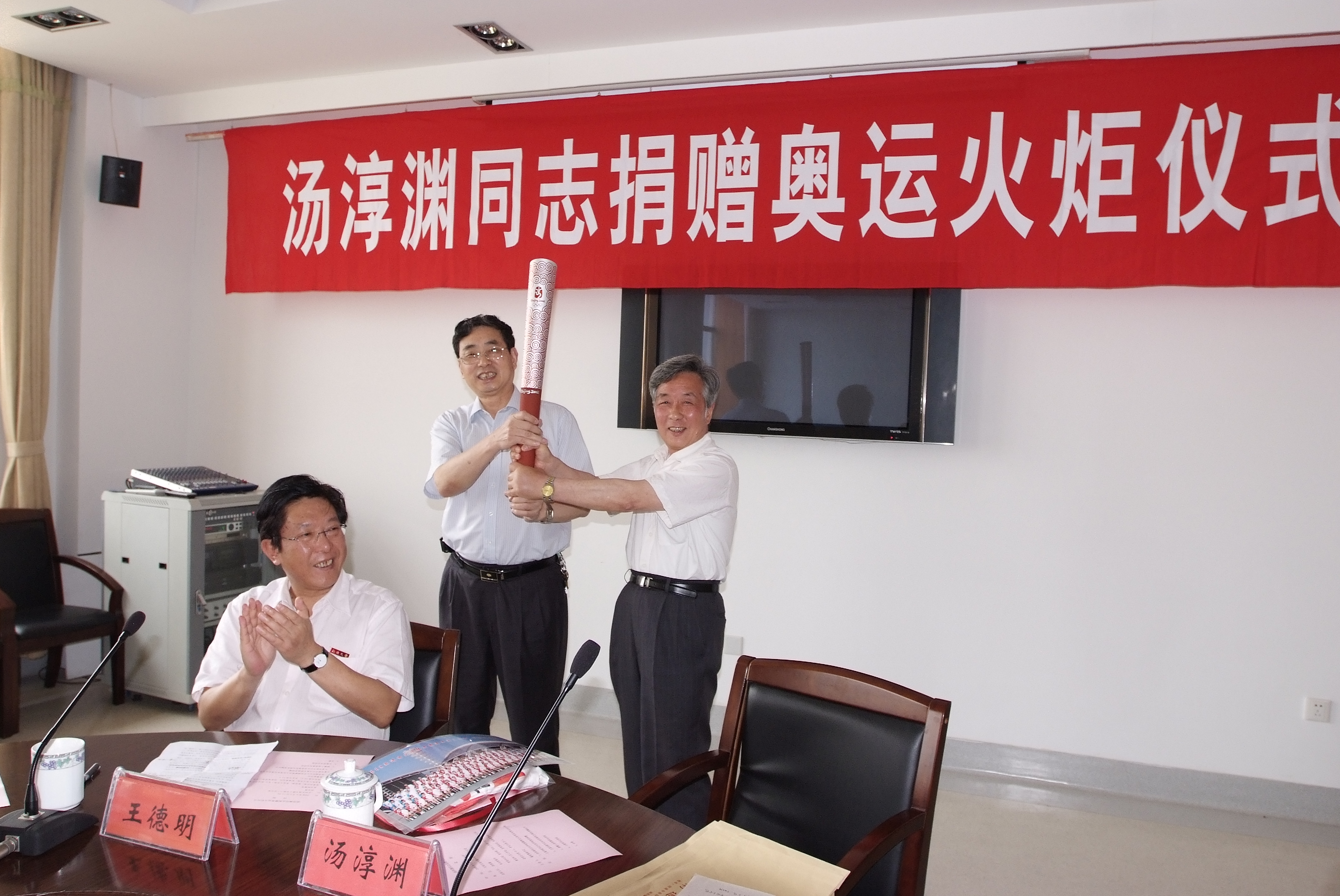 2008年6月2日下午,奥运火炬手、我校省管退休干部、全国精神文明建设典型“莫文隋”的原型之一汤淳渊将“祥云”火炬捐赠给学校。
