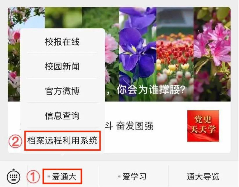 搜索微信公众号“南通大学”并关注,进入“档案远程利用系统”。